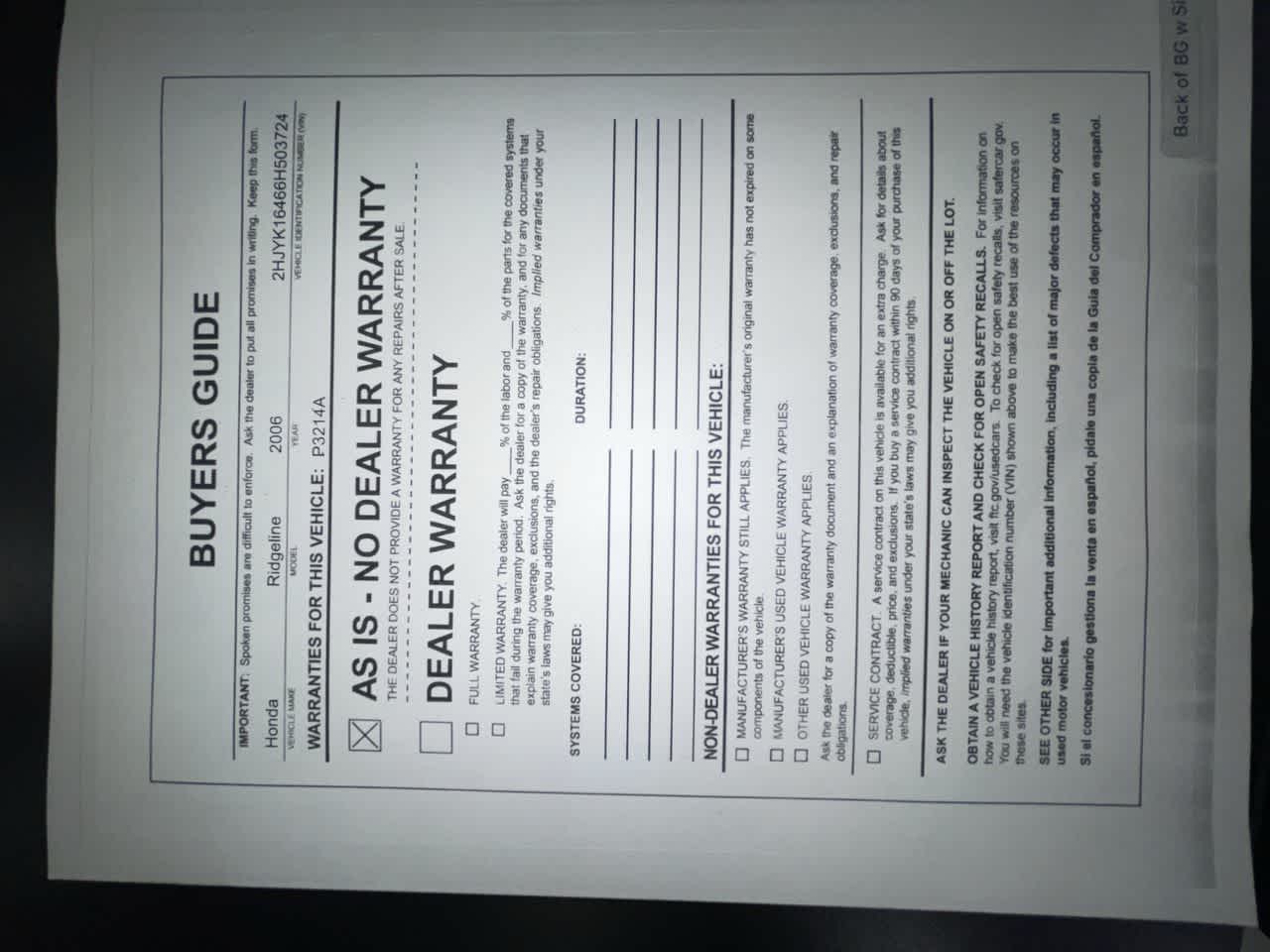 - Vehicle Name: Honda Ridgeline