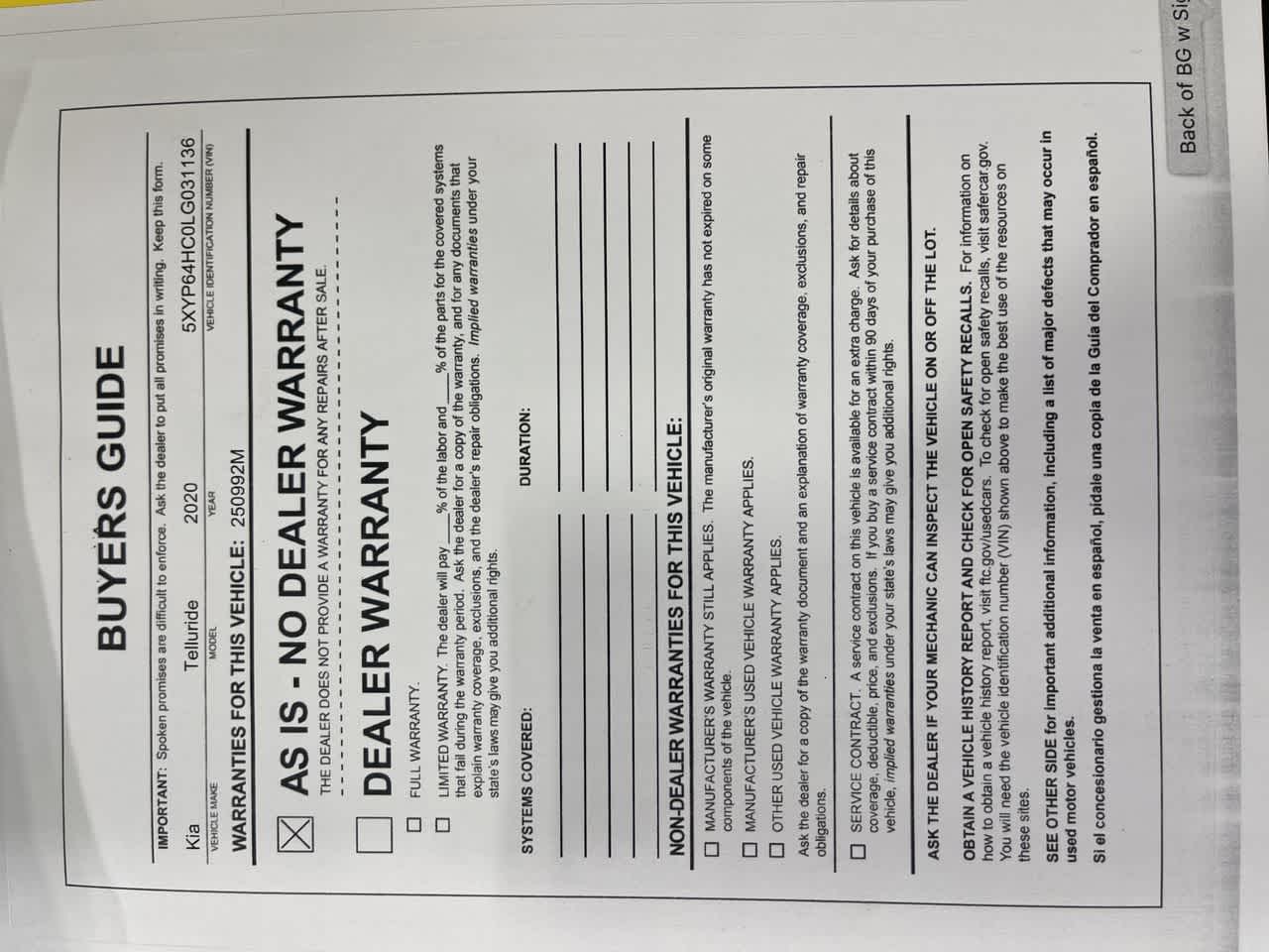 - Vehicle Name: Kia Telluride