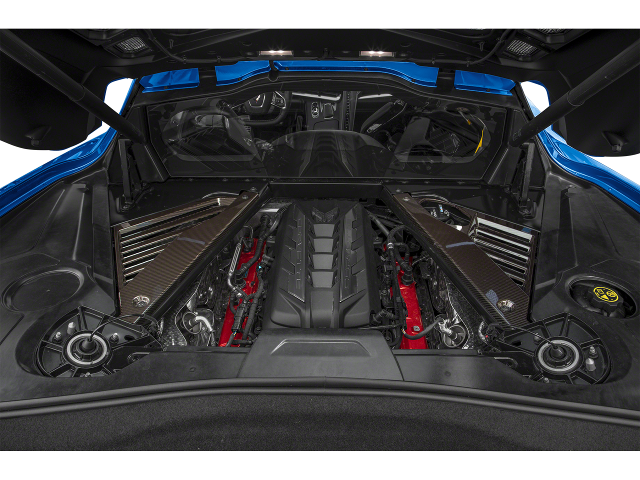 Z51 PERFORMANCE PACKAGE includes (J55) Z51 performance brakes, (FE3) Z51 performance suspension, (NPP) performance exhaust, (GM7) performance rear axle ratio, (G96) Electronic Limited Slip Differential (eLSD), (T0A) Z51 rear spoiler, front splitter, (XFQ) 245/35ZR19 front and 305/30ZR20 rear, blackwall, high performance tires and (V08) heavy-duty cooling system, LPO, 19" X 8.5" (48.3 CM X 21.6 CM) FRONT AND 20" X 11" (50.8 CM X 25.4 CM) REAR 5-TRIDENT-SPOKE BLACK-PAINTED ALUMINUM WHEELS includes (SPY) Black lug nuts, LPO and (SPZ) Black wheel locks, LPO. Accessory LPO wheels are a second set of wheels. Please ensure customer desires 2 sets of wheels before ordering. Accessory wheels do not include additional wheels caps, factory wheels caps may be reused, or additional wheel caps may be purchased. Genuine Corvette Accessory, SUSPENSION, Z51 PERFORMANCE WITH MAGNETIC SELECTIVE RIDE CONTROL includes (B4Z) Performance Traction Management, AUDIO SYSTEM, CHEVROLET INFOTAINMENT 3 PREMIUM SYSTEM WITH CONNECTED NAVIGATION 8" diagonal HD color touchscreen, AM/FM stereo, Bluetooth® audio streaming for 2 active devices, Apple CarPlay® and Android Auto® capable, enhanced voice recognition, additional memory for in-vehicle apps, cloud connected personalization for select infotainment and vehicle settings. (STD), ENGINE, HIGH-OUTPUT Variable Valve Timing (VVT), Active Fuel Management (AFM) (490 hp [365.4 kW] @ 6450 rpm, 465 lb-ft of torque [627.8 N-m] @ 5150 rpm) (STD), INCLUDES MANUAL AND AUTO MODES (STD). Chevrolet 3LT with Arctic White exterior and Adrenaline Red interior features a 8 Cylinder Engine with 490 HP at 6450 RPM*.