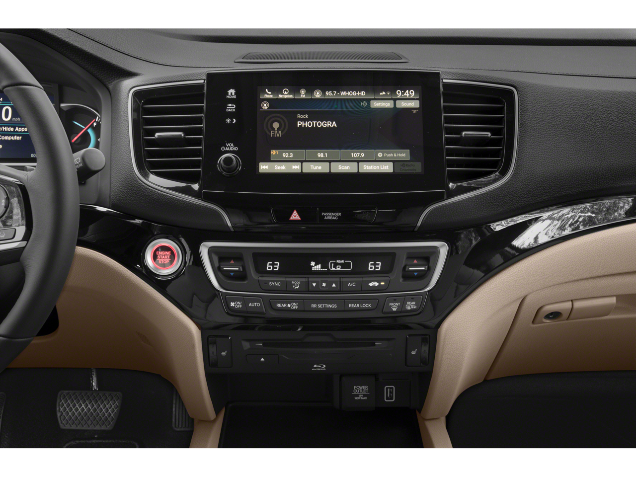 - Radio: 590-Watt Premium Audio System -inc: 10 speakers, subwoofer, 8" display audio w/high-resolution electrostatic touch-screen and customizable feature settings, 2.5-amp USB smartphone/audio interface front console (1 port), Bluetooth® HandsFreeLink, Bluetooth® streaming audio, MP3/auxiliary input jack, Radio Data System (RDS), Speed-Sensitive Volume Compensation (SVC), 2.5-amp USB charging port in center console (1 port) and 2nd row (2 ports), HondaLink, CabinControl remote compatibility, Apple CarPlay integration, Android Auto integration, SMS text message function (Compatible w/select phones w/Bluetooth®, Your wireless carrier's rate plans apply, State or local laws may limit use of texting feature, Only use texting feature when conditions allow you to do so safely.), SiriusXM radio (SiriusXM services require a subscription after any trial period, If you decide to continue your SiriusXM service at the end of your trial subscription, the plan you choose will automatically renew and bill at then-current rates until you call SiriusXM at 1-866-635-2349 to cancel, See our customer agreement for complete terms at www.siriusxm.com, Fees and programming subject to change, Available in the 48 contiguous United States and D.C, SiriusXM and all related marks and logos are trademarks of SiriusXM Radio Inc, HD Radio, CabinTalk in-car PA system through headphones, HondaLink subscription services (HondaLink subscription services come w/complimentary trials of security for 1 year and a remote/concierge trial for 3 months, Enrollment is required to access the remote/concierge trial and to access certain features of security, At the end of each trial period, purchase of a subscription is required to continue the respective services.), Wi-Fi hotspot capability (Requires AT&T data plan.) and multi-zone audio