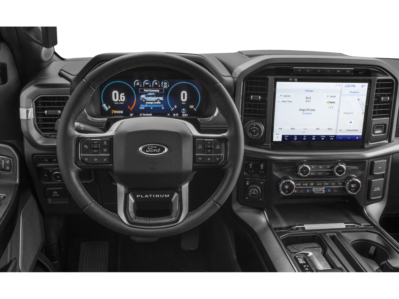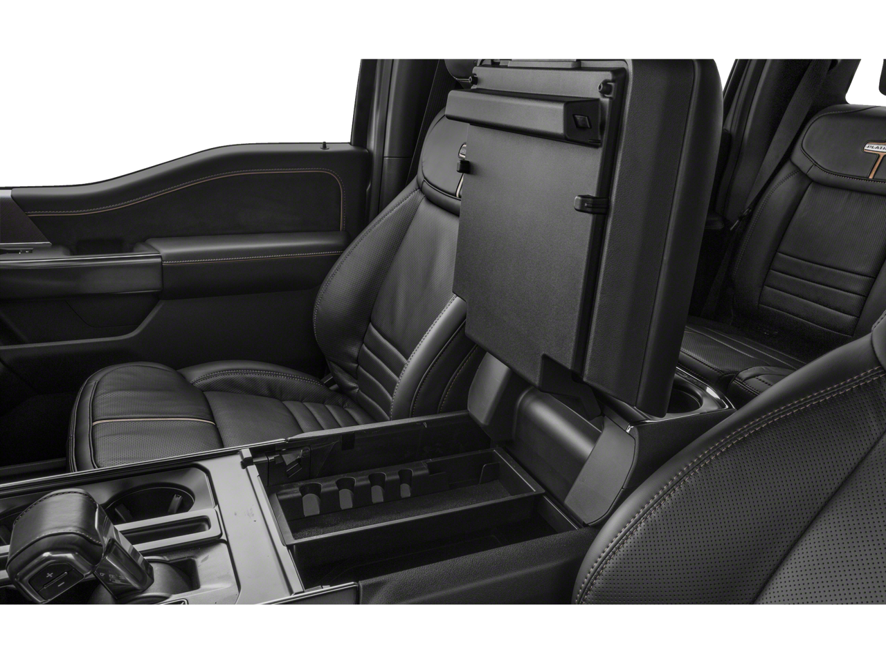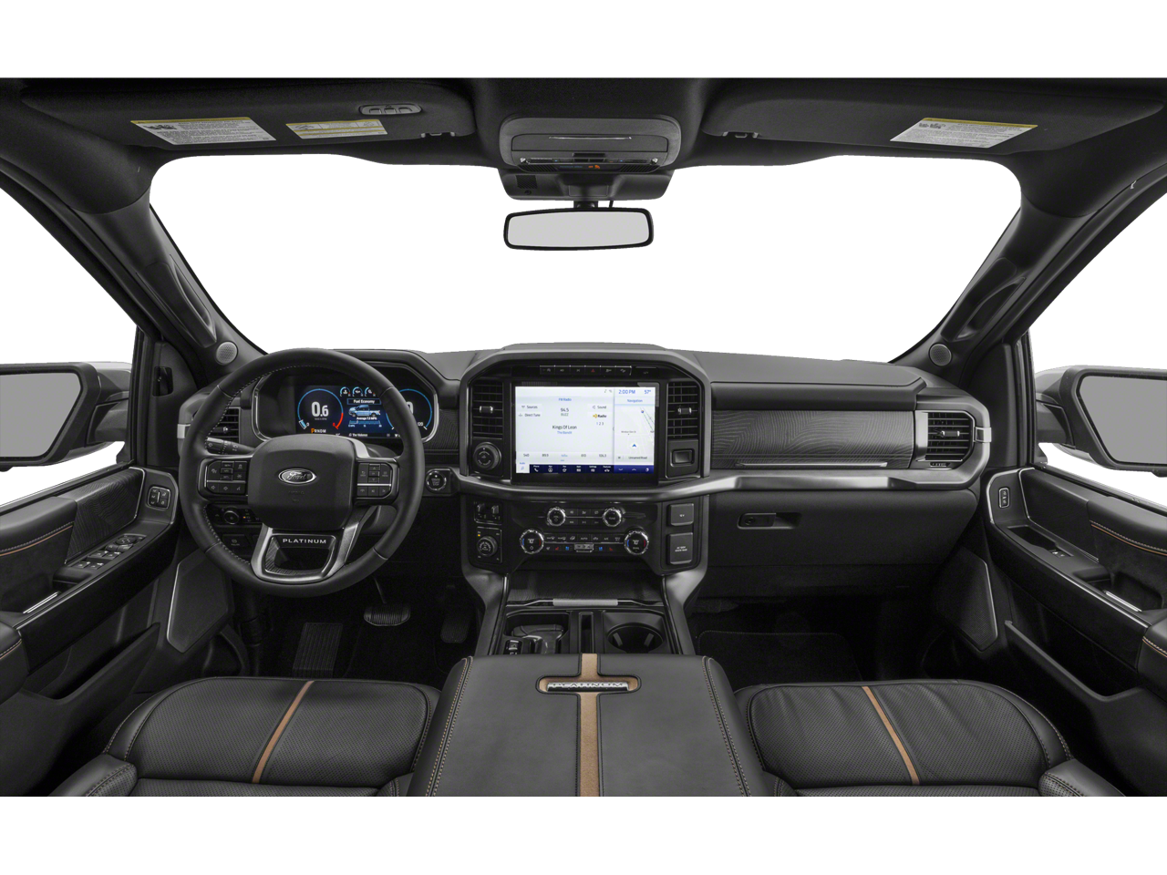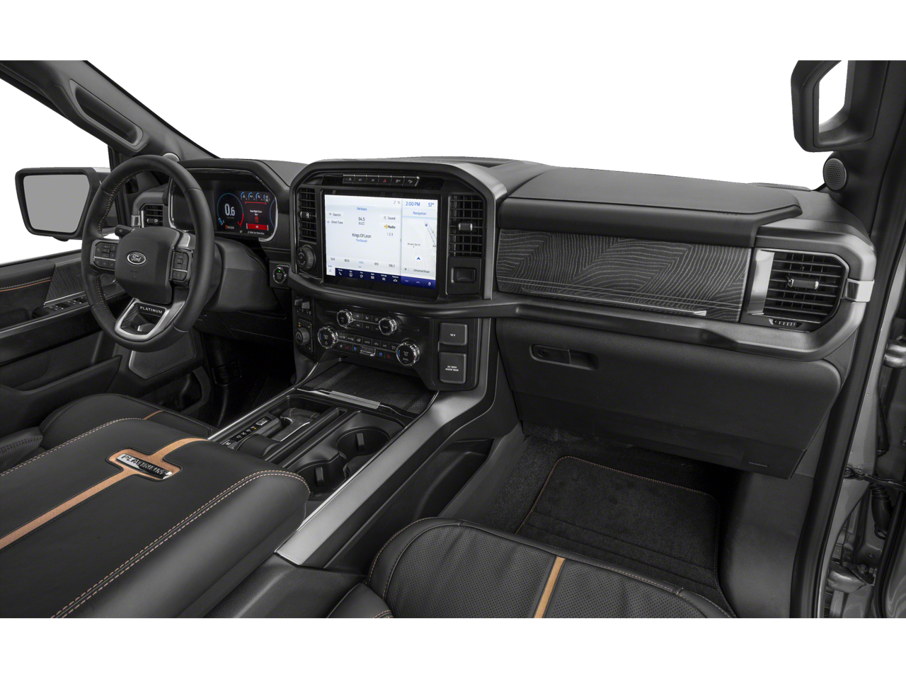 EQUIPMENT GROUP 701A HIGH Ford Co-Pilot360 Active 2.0, forward sensing system, BlueCruise, Active Park Assist 2.0, Radio: B&O Unleashed Sound System by Bang & Olufsen, HD Radio and 18 speakers including subwoofer, Bed Utility Package, BoxLink, 4 premium locking cleats, LED Box Lighting, Tailgate Step w/Tailgate Work Surface, Power Tailgate, Tow Technology Package, smart trailer tow connector and BLIS w/trailer tow coverage where BLIS is available, 360 Degree Camera, trailer reverse guidance, Pro Trailer Backup Assist, TWIN PANEL MOONROOF, ENGINE: 3.5L V6 ECOBOOST, ELECTRONIC LOCKING W/3.55 AXLE RATIO, POWER TELESCOPING/GLASS/FOLDING TRAILER TOW MIRRORS heat, turn signal, memory, auto-dimming feature (drivers side) and chrome skull caps, LED Sideview Mirror Spotlights, high-intensity LED security approach lamps, TRANSMISSION: ELECTRONIC 10-SPEED AUTOMATIC selectable drive modes: normal, ECO, sport, tow/haul, slippery, deep snow/sand and mud/rut (STD). Ford Platinum with Agate Black exterior and Black interior features a V6 Cylinder Engine with 400 HP at 6000 RPM*.
