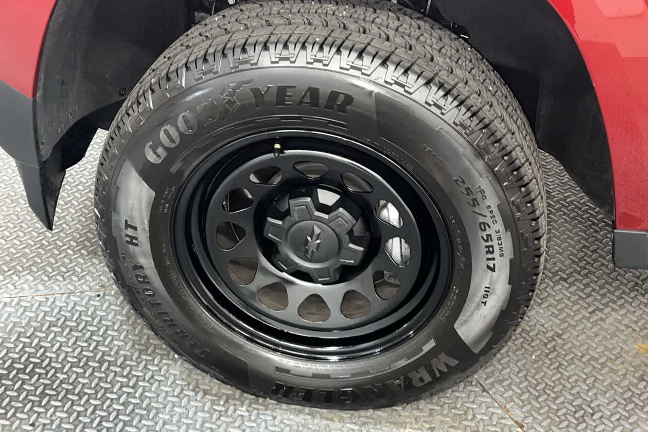 ENGINE, 2.7L TURBO PLUS (310 hp [231 kW] @ 5600 rpm, 391 lb-ft of torque [530 Nm] @ 2000 rpm), WT CONVENIENCE PACKAGE II includes (A2X) 8-way power driver seat, (AL9) driver seat power lumbar, (PPA) EZ lift and lower tailgate, (BPC) StowFlex Tailgate and (BDR) Locking Cylinder, HEAVY-DUTY includes trailer hitch and 7-pin connector (Includes (JL1) Trailer brake controller. WT CONVENIENCE PACKAGE includes (A28) Sliding rear window, (C49) Rear defogger, (K34) Cruise control and (A91) Remote lock/unlock tailgate, DIFFERENTIAL, AUTOMATIC LOCKING REAR, 1ST AND 2ND ROWS includes Chevrolet logo, (dealer-installed), TRANSMISSION, 8-SPEED AUTOMATIC. Chevrolet 4WD Work Truck with RADIANT RED TINTCOAT exterior and JET BLACK CLOTH SEATS interior features a 4 Cylinder Engine with 310 HP at 5600 RPM*.