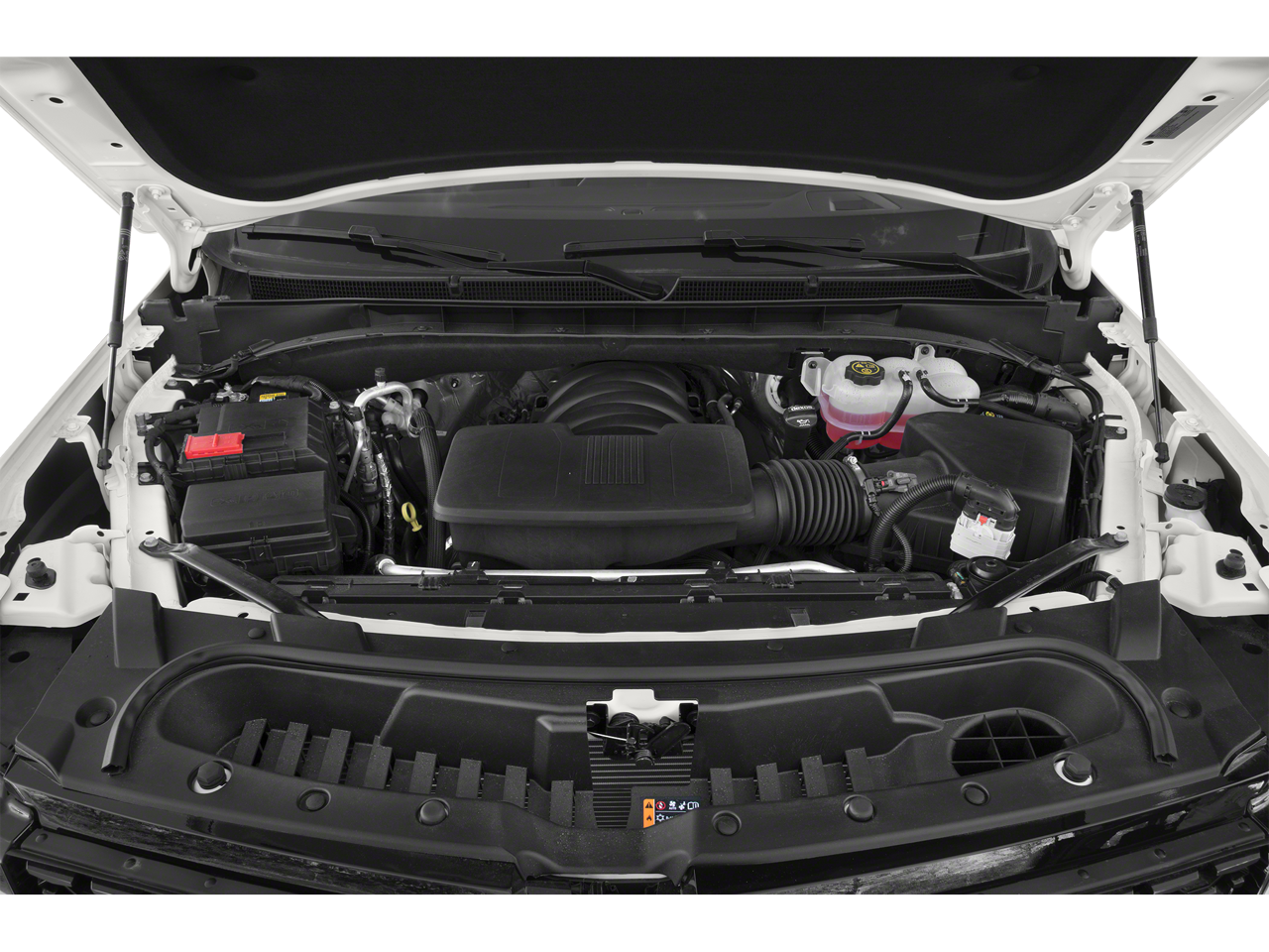 REAR SEAT ENTERTAINMENT SYSTEM includes dual independent rear seat-mounted 12.6 diagonal color-touch LCD HD screens, 2 HDMI input ports on the back of the center console, two 2-channel Bluetooth® headphones; compatible with other Bluetooth® headphones, OLED INFOTAINMENT EXPERIENCE WITH NAVIGATION AM/FM/SiriusXM with 360L with 16.9 diagonal color information display (displays and controls navigation, music and all features and functions of the vehicle), personalized profiles for each drivers settings, Natural Voice Recognition, Phone Integration for Wireless Apple CarPlay®/Wireless Android Auto® capability for compatible phone, Connected Apps and Teen Driver (STD), ENGINE, 6.2L V8 WITH DYNAMIC FUEL MANAGEMENT Direct Injection and Variable Valve Timing, includes aluminum block construction (420 hp [313.2 kW] @ 5600 rpm, 460 lb-ft of torque [623.7 Nm] @ 4100 rpm) (STD), TRANSMISSION, 10-SPEED AUTOMATIC electronically controlled with overdrive, tow/haul mode and tap up/tap down shifting (STD).