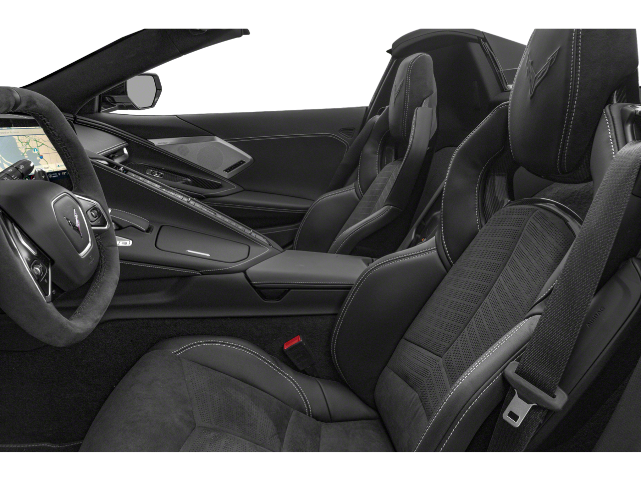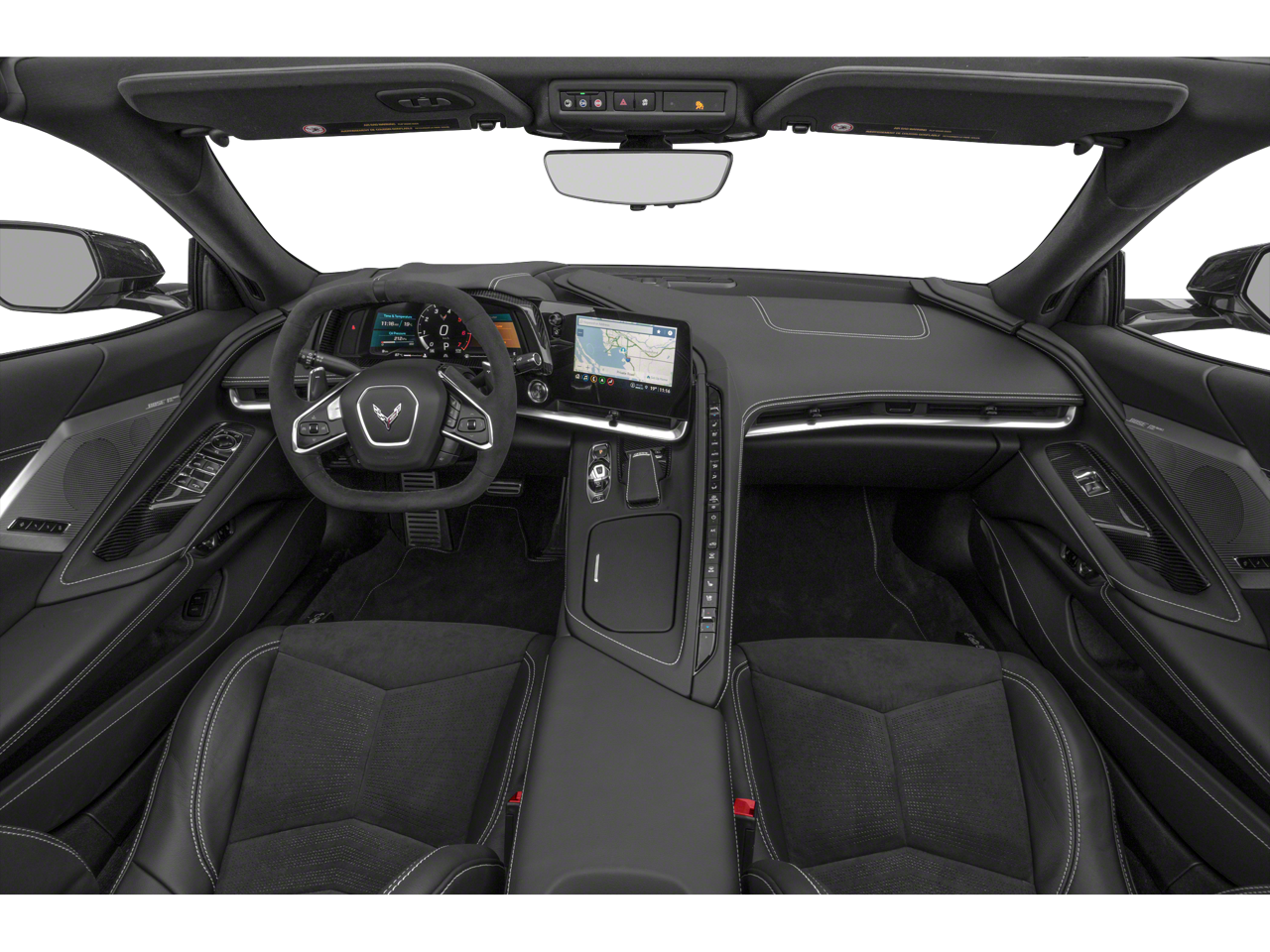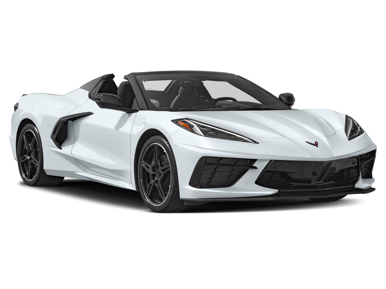 CONVERTIBLE TOP, CARBON FLASH-PAINTED NACELLES AND ROOF, SEATS, COMPETITION SPORT BUCKET, WHEELS, 19" X 8.5" (48.3 CM X 21.6 CM) FRONT AND 20" X 11" (50.8 CM X 27.9 CM) REAR 5-OPEN-SPOKE CARBON FLASH-PAINTED ALUMINUM WITH MACHINED EDGE, CHEVROLET INFOTAINMENT 3 PREMIUM SYSTEM with Google built-in compatibility (select service plan required, terms and limitations apply) including navigation capability, 8" diagonal HD color touchscreen, includes multi-touch display, AM/FM stereo, Bluetooth® streaming audio for music and most phones; featuring Wireless Apple CarPlay® and Wireless Android Auto® capability for compatible phones, advanced voice recognition, in-vehicle apps, personalized profiles for infotainment and vehicle settings (STD), ENGINE, 6.2L V8 DI, HIGH-OUTPUT Variable Valve Timing (VVT), Active Fuel Management (AFM) (490 hp [365.4 kW] @ 6450 rpm, 465 lb-ft of torque [627.8 N-m] @ 5150 rpm) (STD), TRANSMISSION, INCLUDES MANUAL AND AUTO MODES (STD). Chevrolet 1LT with Arctic White exterior and Jet Black interior features a 8 Cylinder Engine with 490 HP at 6450 RPM*.